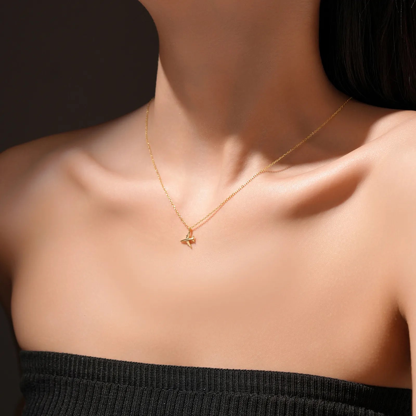 🛩 Schwebende Eleganz: Das zarte Flugzeug scheint fast schwerelos zu fliegen – ein minimalistisches Meisterwerk, das jedes Outfit bereichert.