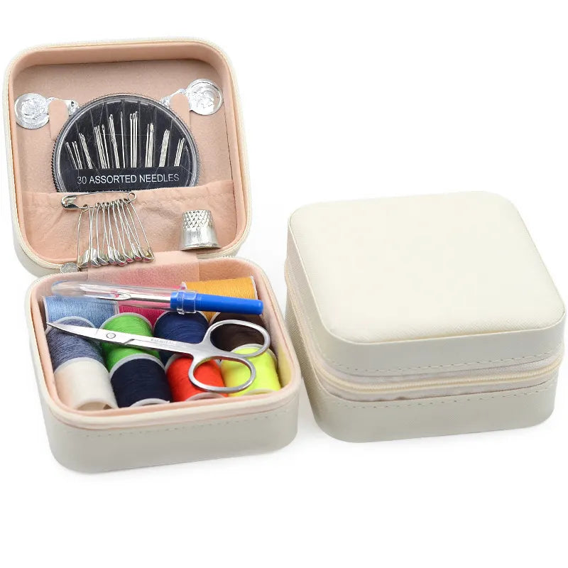 Reise-Nähset in eleganter Saffiano-Leder-Box – Praktisch, stilvoll und perfekt für Flugbegleiterinnen und Reisende